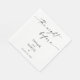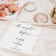 Esses lindos guardanapos de papel apresentam um design minimalista limpo em preto e branco e são uma maneira perfeita de acentuar a mesa de coquetel, comida ou sobremesa do seu jantar de ensaio de casamento! Personalize facilmente as cores e o texto da maioria das cores para combinar perfeitamente com o tema do seu evento.