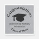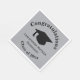 Fraldas de papel com "Parabéns" pretos, boné, nome e "Classe de 20xx" em prata mate. Personalize com nome ou monograma inicial(s) e ano de classe usando os modelos fáceis. A cor da fonte, o estilo da fonte, o tamanho da fonte e a cor de fundo prateado correspondente são personalizáveis. A maneira perfeita de felicitar o formando e celebrar a formatura.