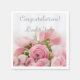 Perfeito para as suas recepções de casamento ou festas de janto experimentem estes adoráveis guardanapos de papel mostrados com um bonito buquê floral rosa com parabéns e nomes personalizados. Personalize este item e altere os nomes para o seu. Mostrado é o tamanho do coquetel.