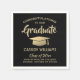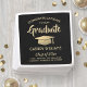 Adicione um toque elegante personalizado à decoração de festas de formatura ou colégios com esses guardanapos de papel preto e ouro personalizados. Todo texto é simples de personalizar. Design apresenta um fundo preto, boné de conselho de morteiro de folha falsa, tipografia na moda moderna e caligrafia de script escrita à mão. Observe que o ouro é impresso a cor, não a folha metálica. Parabéns ao formando!