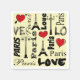 Design de texto de Paris para Dia de os namorados com formas vermelhas de coração, Torre Eiffel e decoração de lâmpadas de rua em fundo amarelo