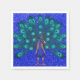 Guardanapos de papel com a imagem de um belo pavão contra um fundo azul simulado por brilho.