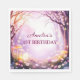 Os guardanapos do aniversário de criança temático da páscoa com luzes brilhantes mágicas, uma floresta encantada com cogumelos, flores brancas e ovos de Páscoa.