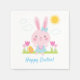 Bonitos guardanapos de Páscoa, cor-de-rosa, com um coelho rosa da Páscoa rodeado por um ovo e tulipas de Páscoa. Que bom para a festa de janto da sua Páscoa. Projetado para você pelo Blackberry Boulevard.