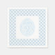 Guardanapo de papel para festa é mostrado no tamanho de coquetel branco com uma estampa de ovo de Páscoa xadrez azul-pó e branco fofa.