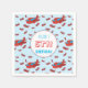 Um padrão de avião vermelho e azul agudo com uma cor de fundo azul clara e um nome personalizado no meio. Design perfeito para rapazes ou raparigas que adoram aviões, aviação, aviões ou voos. Os guardanapos de festa de aniversário para crianças ideais. A desvinculação da parte pode ser visualizada nesta coleção ou nesta coleção de designs.