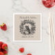 Os guardanapos descartáveis de papel são perfeitos para o chá de panela, o chá casal, o janto de ensaio ou a recepção de casamento apresentam um design de colheita bonito com dois pássaros amorosos e uma coroa floral. Você pode adicionar facilmente os nomes dos casais de casamento e a data do casamento para personalizar, assim como mudar a cor de fundo para qualquer cor que quiser!