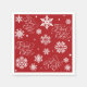 Ilustração de texto de paz e alegria com decoração de flocos de neve brancos em fundo vermelho