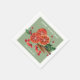 Os guardanapos de coquetel apresentam fatias de laranja, bastões de canela e bagas e seu texto em caracteres quicos em um fundo verde de sábio. A combinar itens na nossa loja.