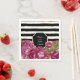 Os bonitos guardanapos de papel floral personalizados apresentam cor-de-água rosa Pêonias sobre um fundo de listras realçado de ouro preto e branco moderno. Adicione nomes de noiva e noivo e data de casamento. Itens correspondentes disponíveis na minha loja.