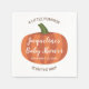 Estes adoráveis guardanapos de chá de fraldas de outono apresentam uma abóbora fofa e as palavras "UM POUCO DE PUMPKIN ESTÁ A CAMINHO!" em castanho e o nome da futura mãe e a data de chá de fraldas em branco. Personalize todo o texto deste design.