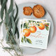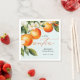 Os guardanapos de Chá de fraldas da Clementina Laranja Pequena apresenta um belo buquê de laranjas aquáticas e flores, juntamente com o elegante tipo de caligrafia.