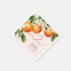 Os guardanapos de Chá de fraldas da Clementina Laranja Pequena apresenta um belo buquê de laranjas aquáticas e flores, juntamente com o elegante tipo de caligrafia.