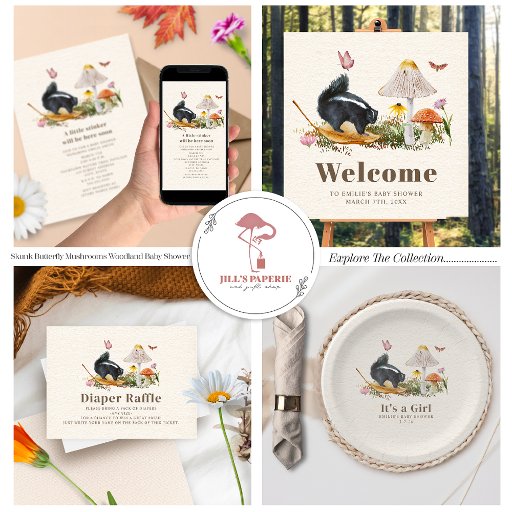 Skunk Butterfly Mushrooms Woodland Baby ShowerCriado por Jill P.