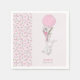 Pequenos guardanapos de Chá de fraldas coelho e balão - ou personalize a redação para seu bebê borrifador, revelação de gênero etc. A design apresenta bordas de flores rosadas e descartáveis com um coelho bonito segurando um balão rosa e um pequeno buquê de flores.
