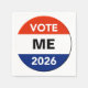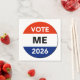 Make your own personalized campaign buttons and other materials for the presidential year primary and general elections of 2026. The default candidate is “ME”, but you can easily change that to any candidate you support or would like to encourage. Or, why not run yourself? You might have a great political future ahead… even as president in a couple of years if you’ll be 35 years old. Otherwise, it’s the Senate, the House of Representatives, or statewide office. Maybe even a local elective office. Get started now. Use the “click to customize further” template link to change font size or color. Even add a small graphic, if you wish.