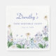 Novo para o Verão de 2024. Azul poeirento suave e híbridos roxos misturam-se com rosas brancos e selvagens de cor branca e esbranquiçada. O nome do celebrante de aniversário é escrito em uma fonte de script fácil de ler. O ano e a data de aniversário seguem em uma fonte de serifa tradicional e negrito. Todo o texto é editável para que você possa personalizar suas boas-vindas.