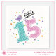 Celebre o aniversário de uma jovem com estilo com esses adoráveis guardanapos personalizáveis "Quinze e Fabulosa". Com um passarinho azul caprichoso chilreando a frase “Quinze e Fabulosa”, esse design divertido está repleto de personalidade. Um grande número 15 com padrão de bolinhas e corações, confetes coloridos e letras retrô dão a esse design uma vibe divertida e jovial, perfeita para celebrar os 15 anos. Adicione um nome e sua própria mensagem para criar acessórios únicos para a festa de aniversário que irão deliciar a aniversariante e seus convidados.