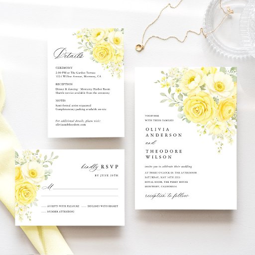 Butter Yellow Ivory Floral Wedding SuiteCriado por K Lily