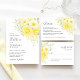 Matching items available including wedding invitations, RSVP cards, details cards, menus, welcome signs, seating charts, place cards, table numbers, and coordinated wedding signage in the same butter yellow floral collection.