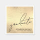 This simple and modern graduation party paper napkin features a faux gold foil background for a bold yet elegant look. The foil effect is flat printed (no real foil) and can easily be changed to rose gold pink, or silver using the filter options to match your party theme or school colors. All text is displayed in crisp black fonts for strong contrast and easy readability.