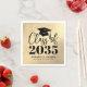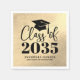This simple and modern graduation party paper napkin features a clean, centered layout with a classic black graduation cap and tassel at the top of the design. All text appears in crisp black fonts for a timeless, high-contrast look. Behind the design, a faux metallic gold foil background adds a touch of elegance and celebration without overpowering the layout.
