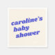 This baby shower napkin in bright cobalt blue features bold, playful lettering with a modern retro feel, perfect for adding personality to the celebration table. The simple, graphic design makes it easy to mix and match with other shower decor while still standing out. A fun detail for drink stations, dessert tables, or place settings that feels cheerful and contemporary. Ideal for hosts who want baby shower details that feel stylish, lighthearted, and thoughtfully designed.