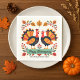 Feliz Dia de Ação de Graças! O design deste guardanapo apresenta perus gêmeos, com caudas a curtir-se como um pôr do sol vibrante, por baixo de uma cobertura de folhas e bagas de outono. Uma faixa central em um roteiro elegante diz "Feliz Ação de Graças", com seu nome de família personalizado abaixo. Estes guardanapos são o toque perfeito para um banquete festivo.