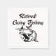 Aposentado! Indo Pescar. Texto preto com um peixe preto e branco prestes a morder a isca num gancho.