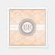 Pêssego, padrão branco de rendas guardanapo com iniciais, apresentando um padrão com pêssego e renda branca, uma faixa branca ao longo do guardanapo e uma linha pontilhada sobre ele e suas iniciais em um quadro com pontos de cinza. Há uma fronteira de cinza ao redor. Este guardanapo giro e giro de papel é perfeito para outras ocasiões especiais, como chás de panela, festas de aniversário, chás de fraldas, noivados, recepção, festa de aniversários etc. Você pode personalizá-lo e adicionar sua mensagem ou monograma.