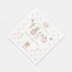 A Charming Delivery from Mr. McGregor's Garden! This paper napkin features a custom hand-painted frame of a crisp pink ribbon pattern creating a clean, classic, and welcoming look. A sweet watercolor clothesline is strung across the center, proudly displaying tiny, adorable items, each subtly featuring a pink clothed bunny in a Peter Rabbit style. The scene is completed with cute fresh carrots, bright, cheerful daffodils, wild flowers, and a bunch of carrots tied with a pink bow all rendered in a soft watercolor style. Easily add your own details and change the font style, size color and placement if you would like to.