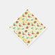 Fraldas de papel com um padrão fofo com cones de pínus e holly em um fundo de aquarela amarela com pequenos círculos brancos espalhados ao redor.