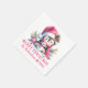 Crie guardanapos de Natal personalizados e únicos com um design festivo que diz "Feliz Natal" e que apresenta um pinguim giro num chapéu cor-de-rosa com fundo branco. O modelo torna fácil digitar seu nome de família na fonte do script e em qualquer ano.