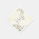 The floral artwork is accented with touches of gold confetti, adding a subtle shimmer that enhances the sophisticated aesthetic. A soft watercolor wash, available in light green, yellow, or pink, provides a gentle backdrop that complements any wedding palette. Printed on high-quality absorbent paper, these napkins are as functional as they are beautiful.
