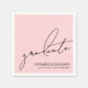 This simple and modern graduation party paper napkin features a girly pink background with all text neatly placed in the bottom right corner for a sleek, understated look. “Graduate” appears in elegant handwritten script, paired with the graduate’s name, “Class of 2026” (or any year), and school name in classic serif fonts.