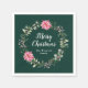 Este guardanapo alegre e festivo apresenta uma coroa com poinsetos cor-de-rosa e holly sobre um fundo verde escuro. O texto combina o script manuscrito e as fontes serif para um aspecto elegante e sofisticado. Isto é perfeito para festas de férias, embrulhos, festas de janto, casa aberta e muito mais.