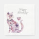 Guardanapo De Papel Pink Purple Blush Flowers Heart Love Cat Birthday