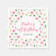 This beautiful and elegant napkin features watercolor pink roses and foliage. The text combines handwritten script and serif fonts for a stylish and modern look. This is perfect for a spring or summer rustic birthday party.