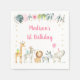 Esses bonitos guardanapos de aniversário apresentam safari de aquarela com sotaques florais e folhosos e falso confete de folha de ouro.