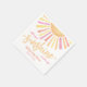 This bright and cheerful napkin design features a vibrant sun at the top, with warm rays in shades of yellow, orange, pink, and red, adding a joyful touch to your celebration. Below the sun, "A Little Ray of Sunshine" is displayed in a playful mix of modern fonts and bold script typography.