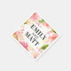 Os guardanapos personalizados apresentam um texto personalizado preto do monograma que pode ser personalizado com os nomes da noiva e do noivo. Inclui um belo design de borda floral de aquarelas com cor pastel rosa, pincel, primavera de pêssego e dália de verão e rosa flores.a