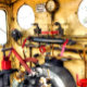 A visão do maquinista do comboio a vapor dos comandos a partir da plataforma do comboio a vapor.