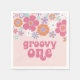 Groovy One! Primeiro aniversario inspirado retroativamente com fontes e cores estilo 70, Floral em cores rosa brilhante e roxo.
