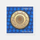Uma bandeja matzah de ornamentado metal Passover com uma Magen David fractal 3D (Estrela de David). A placa sobrepõe-se a uma toalha de mesa azul com vários Magens David. O texto hebraico no prato diz: "מ צ ה" (matzah) e "פ ס ח ש מח" (pesach sameach - Happy Passover). Você pode personalizar adicionando seu próprio texto adicional.