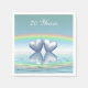 Napkins com minha design original de dois corações de platina flutuando na água sob um arco-íris. O texto personalizável diz "70 Anos".