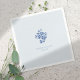 Chic com elegância jovem. Estes guardanapos florais azuis e brancos exaltam um tom fresco, moderno e jovem. O design apresenta um adorável buquê floral elegante com nomes de casais e data, contra um fundo azul pastel claro. Correspondência perfeita para todos os outros itens na coleção.