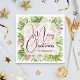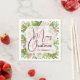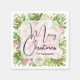 Os guardanapos de papel personalizados apresentam flores de inverno modernas e elegantes e uma poinsettia cor-de-rosa com Feliz Natal e o seu nome em letra chique. CORRESPONDENTE a itens na nossa coleção.