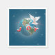 Pomba branca com JOY e planeta Terra sobre fundo azul com estrelas