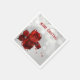 Uma ilustração nobre de Natal: Uma caixa vermelha de presentes com uma bola vermelha de Natal, uma fita e pérolas vermelhas num fundo de cinza branca leve com estrelas.