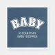 The clean navy varsity typography creates a polished yet playful look that complements a wide range of party themes, including preppy baby showers, varsity baby shower themes, classic teddy bear baby showers, and modern boy baby celebrations. Whether placed at dessert tables, drink stations, or guest place settings, these napkins add a coordinated and elevated detail to your event.